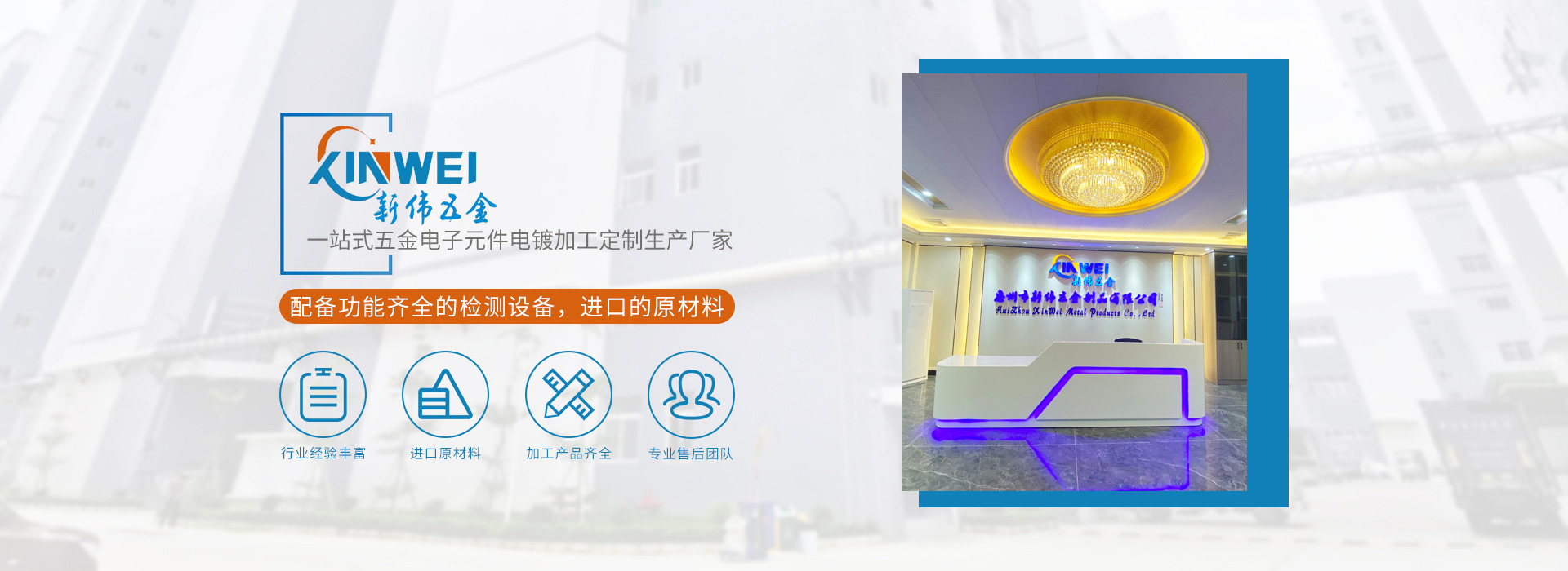 惠州市新偉五金制品有限公司(簡稱:新偉五金)坐落于中國廣東省惠州市,成立于2010年,是一家專業電鍍各種高品質功能性的環(huán)保五金電子元件供應商,公司已通過ISO9001:2015及IATF16949:2016質量體系認證。客戶至上,品質至上,承蒙新老客戶的信賴,公司發(fā)展迅速,廠房車間面積10000平方米,現有員工200名,并擁有一批從事電鍍行業10年以上、經驗豐富的技術骨干,為客戶解決許多疑難問題,另有一支品質工程小組,專業檢測產品品質,杜絕不良品外流,深受客戶好評。